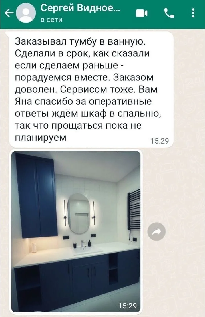 За несколько дней до готовности уведомляем вас о дате доставки мебели